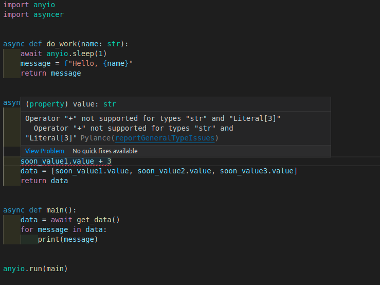 Because of the way Asyncer is designed, you will get typing support in these SoonValue